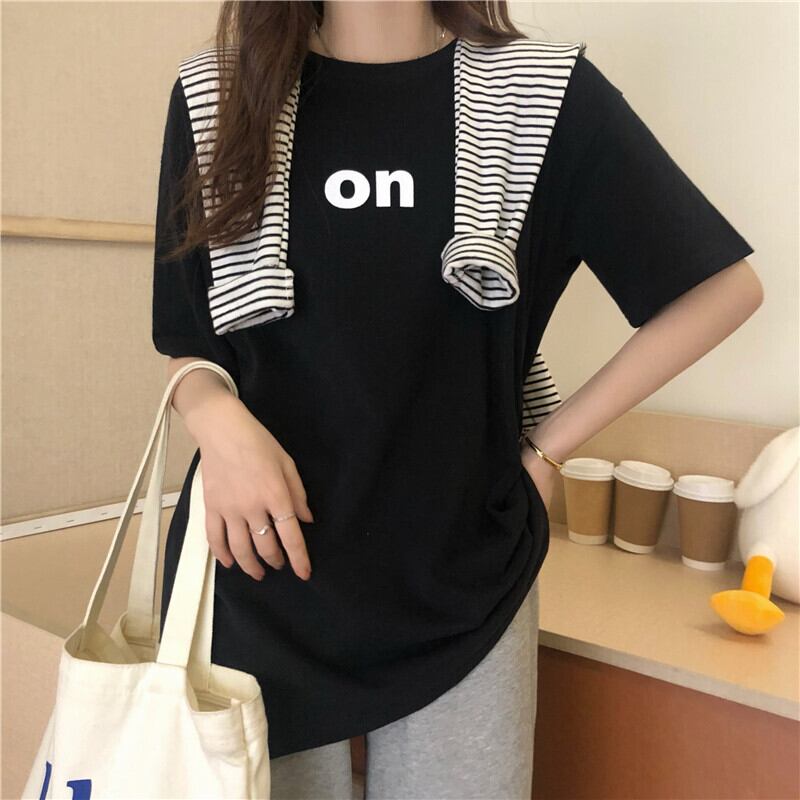 スプリングスタイルルーズラウンドネックシャツ トップス ロングブラックTシャツ レディース 春物 Oネック 試着室48901475496