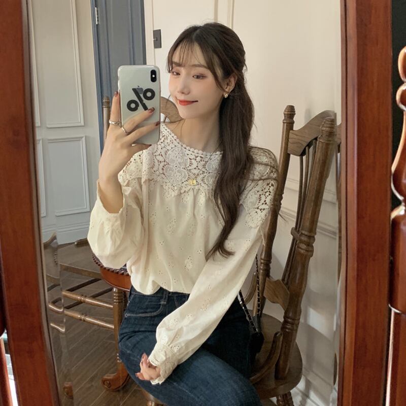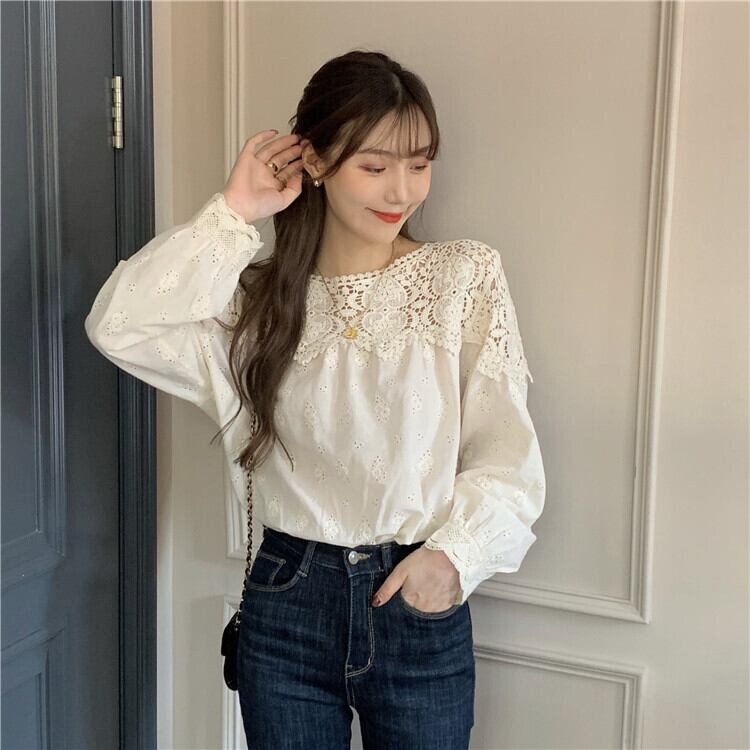 スプリングレースシャツ スタイル ロング 春物 ステッチ 試着室1684195301