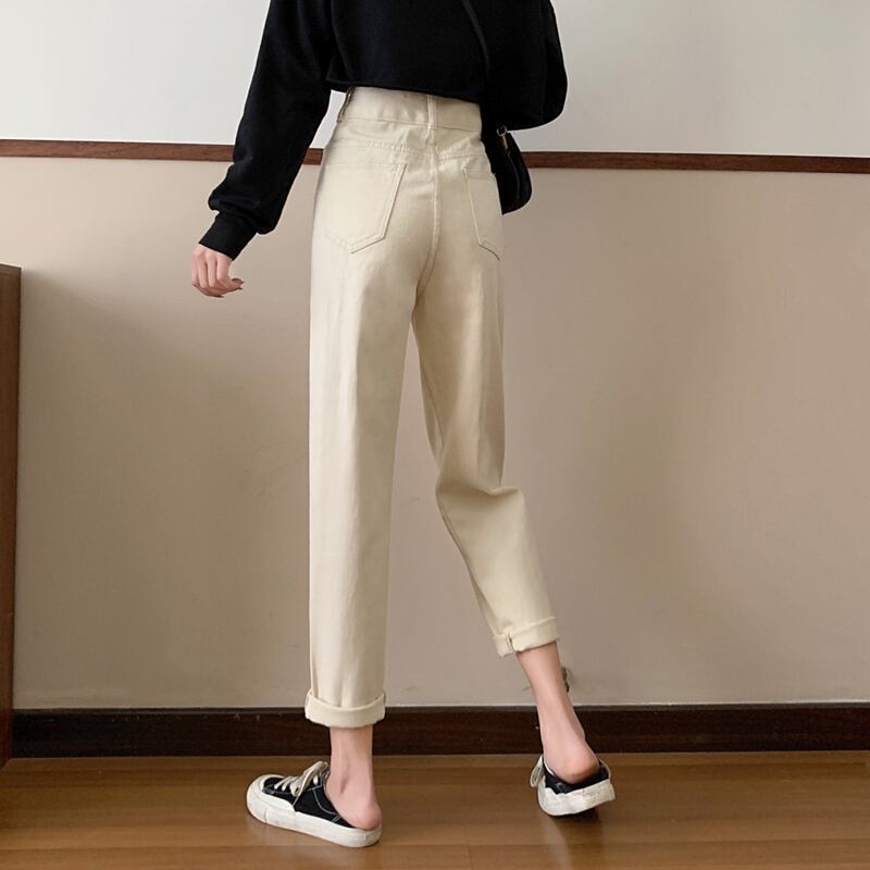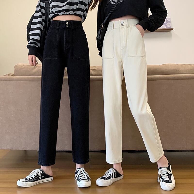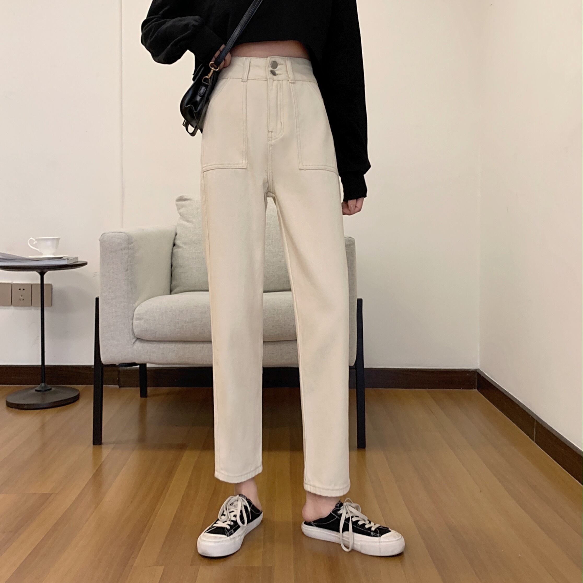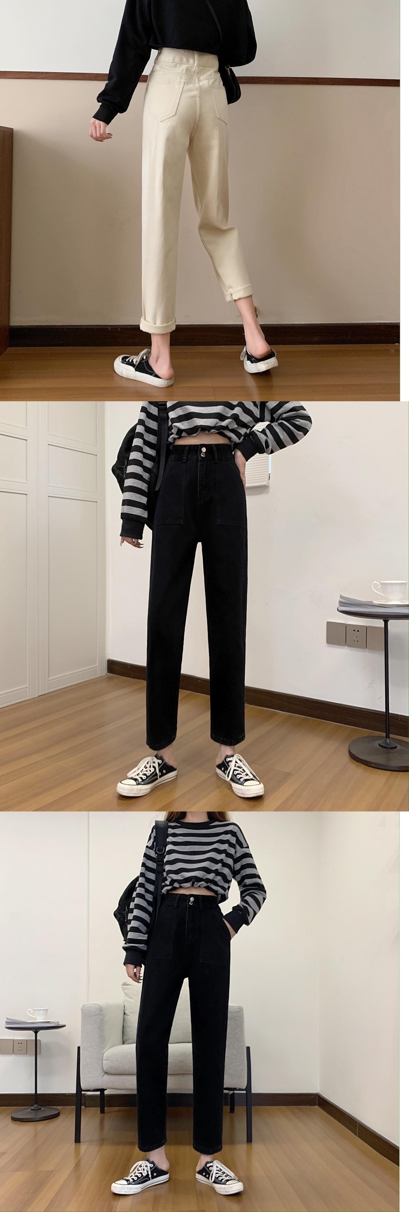 オータムウィンタールーズ薄手パンツ ハイウェストウェストブラックジーンズ レディース 秋物 冬物 試着室4551705485