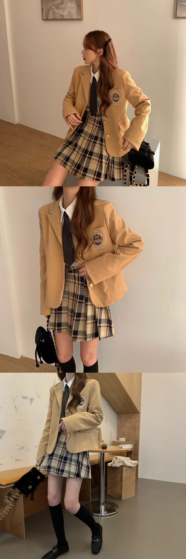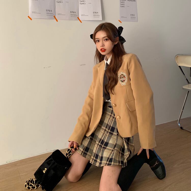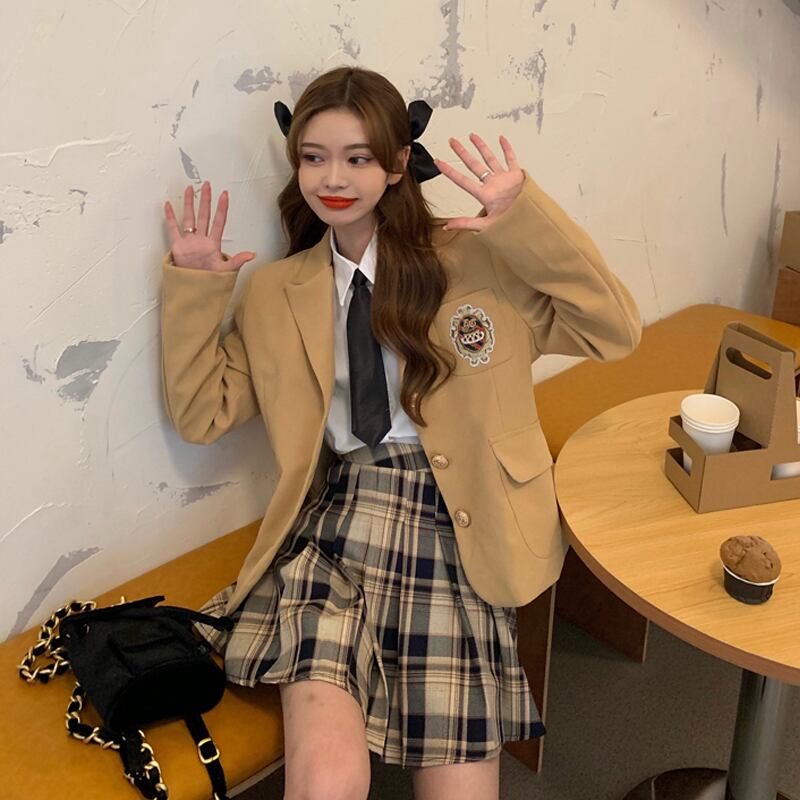 色:シングルダークブルージャケット,カーキコートワンピース,シングルプリーツスカート,シャツ+ネクタイ