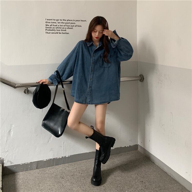 シャツ レディーススプリングスタンダードルーズトップス ロング レトロ 春物 試着室7112968582