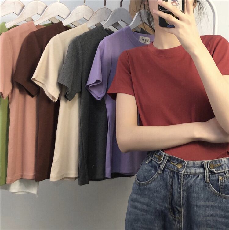 カラーTシャツ シャツ スプリングベーシックラウンドネック薄手トップス 春物 Oネック 試着室96048071290