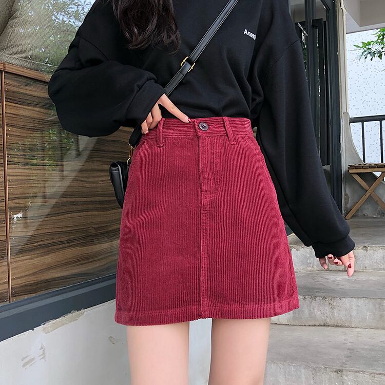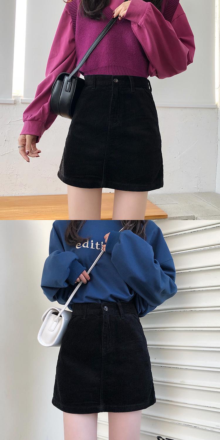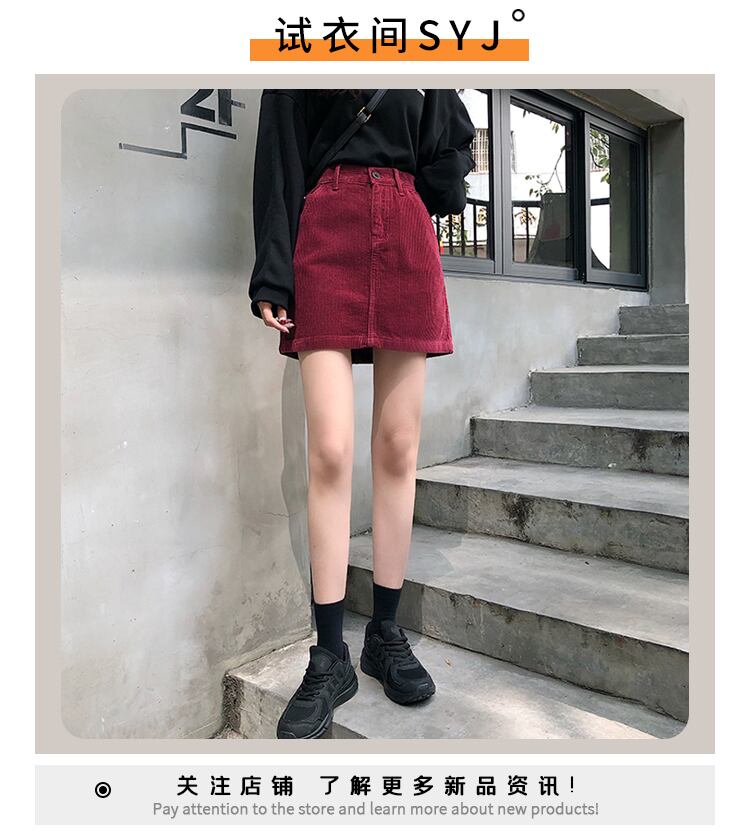 スタンダードコーデュロイスカート ハイウェスト薄手Aラインショート レトロ オータム 秋物 ウィンター 冬物 試着室60826319961