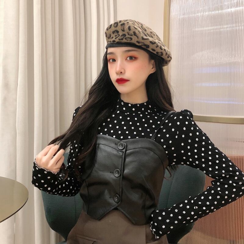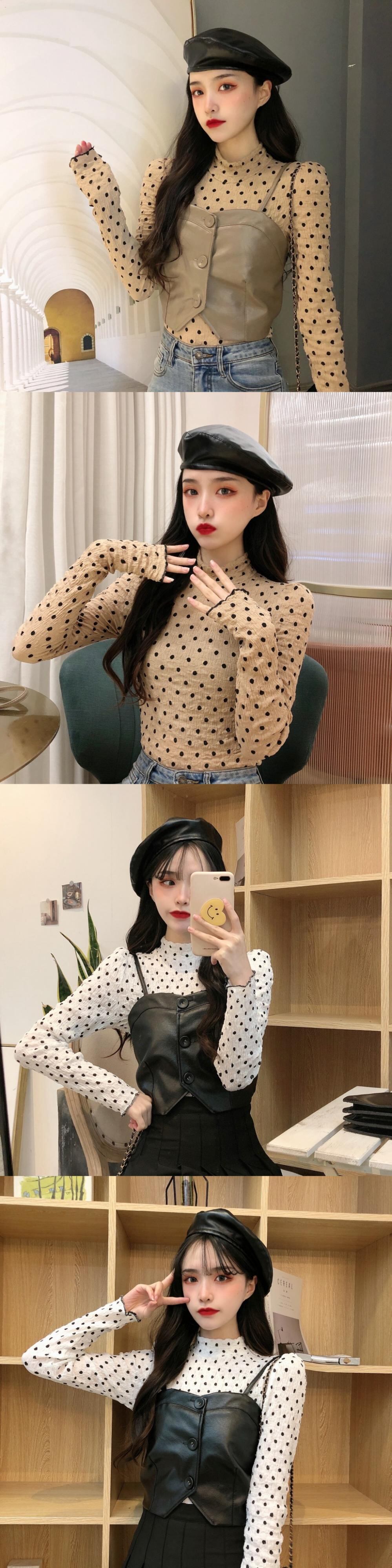 スプリングスタイル水玉シャツ レザーレディース 春物 試着室29218045617