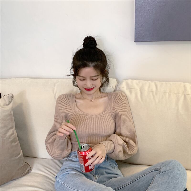 ショートニットセーター レディーススプリングカラースリーブトップス 春物 スクウェア 試着室44280167061