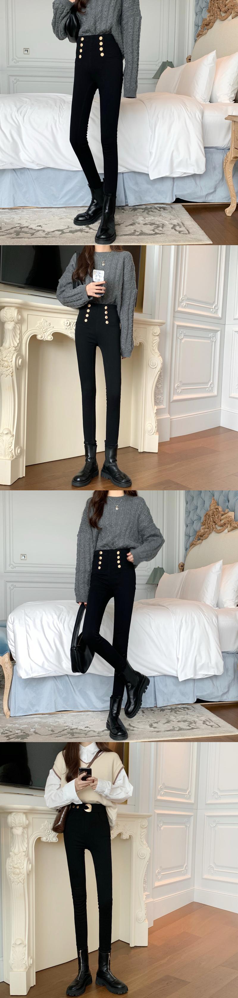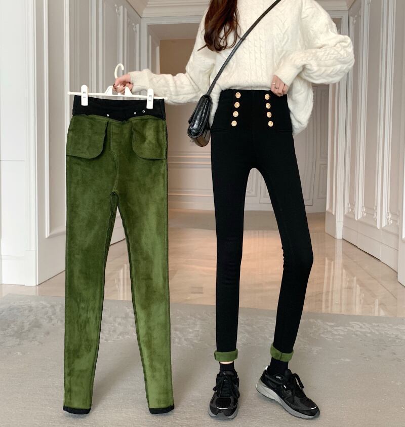 スプリングオータムベルベットブラックパンツ ハイウェストウェストレギンス レディーススキニー 春物 秋物 試着室11515494686