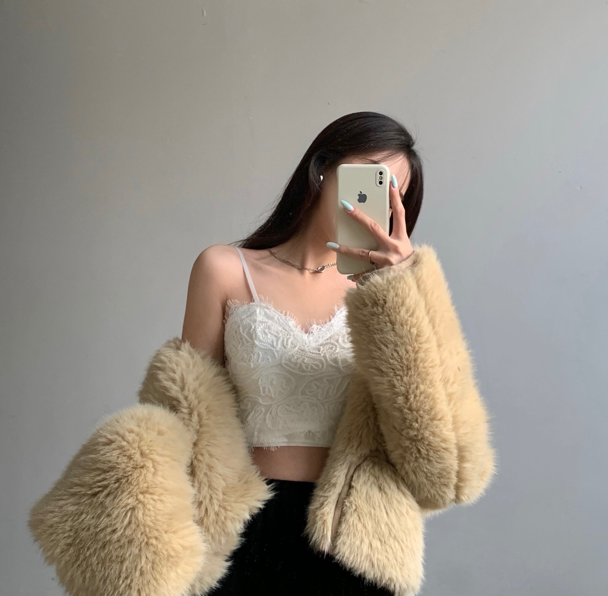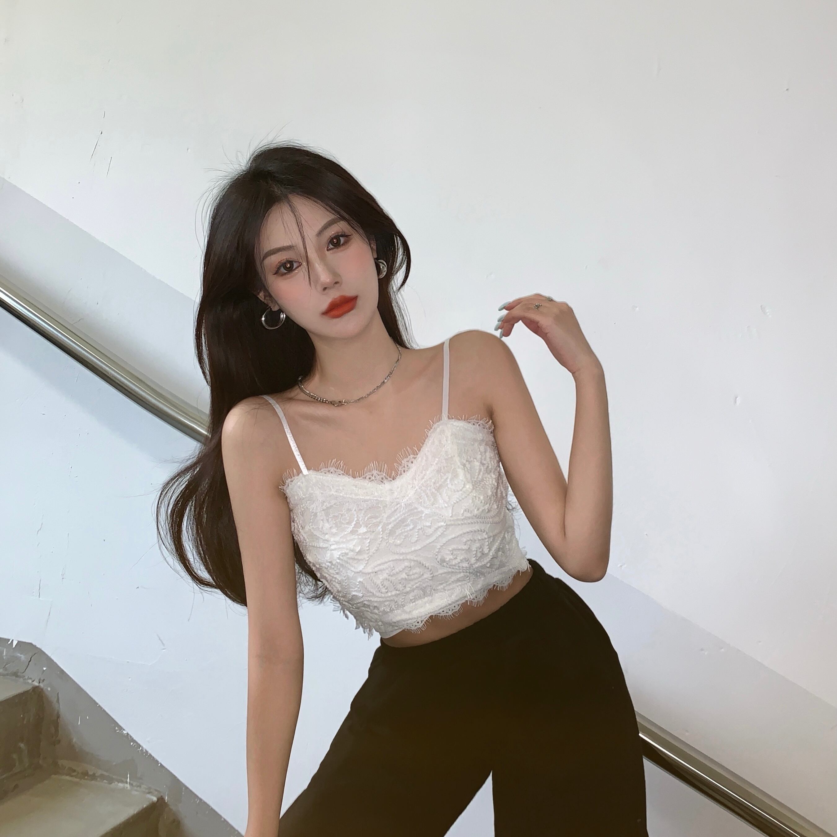 スリムレースサマーノースリーブトップス 夏物 試着室93677553270