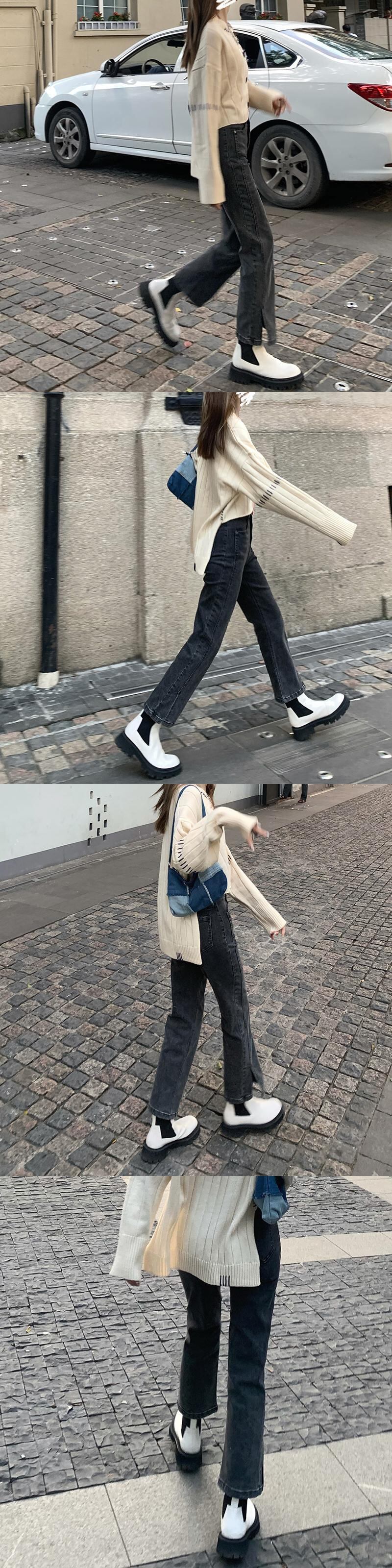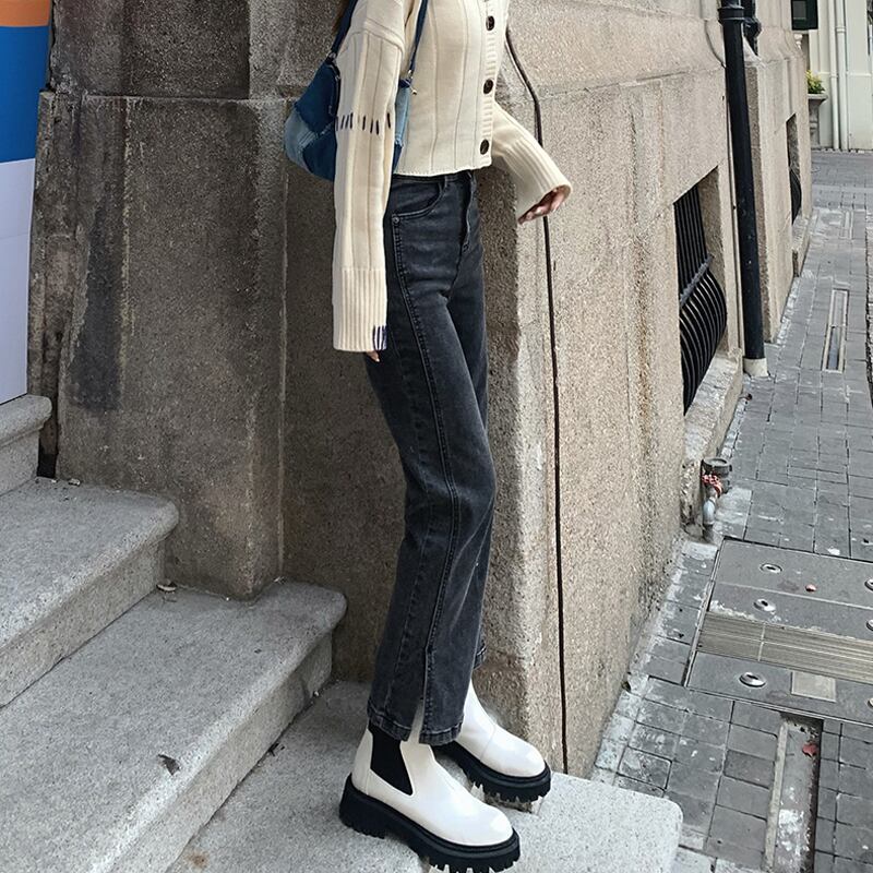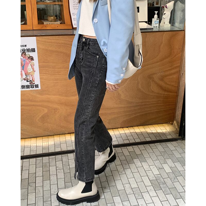 スリット薄手パンツ スプリングオータムハイウェストウェストルーズジーンズ レッド 春物 秋物 試着室25696258798