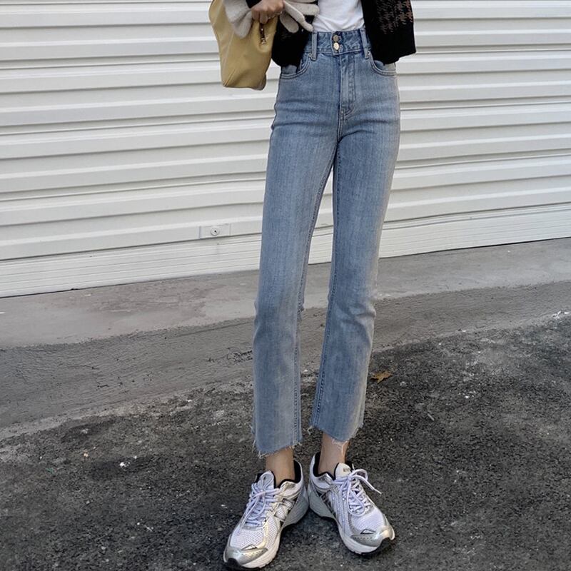 ルーズハイウェストウェスト薄手パンツ スプリングスタイルジーンズ レディース 春物 試着室20691947423