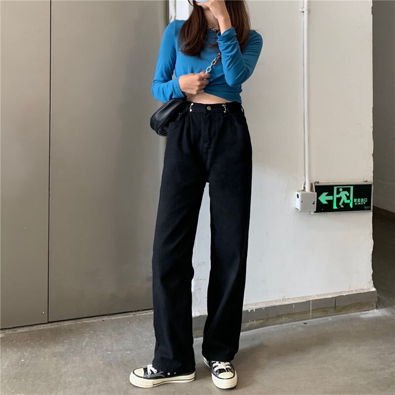 スプリングルーズソリッド カラーワイドレッグジーンズ 春物 ワイドパンツ ソリッドカラー 試着室55985442360