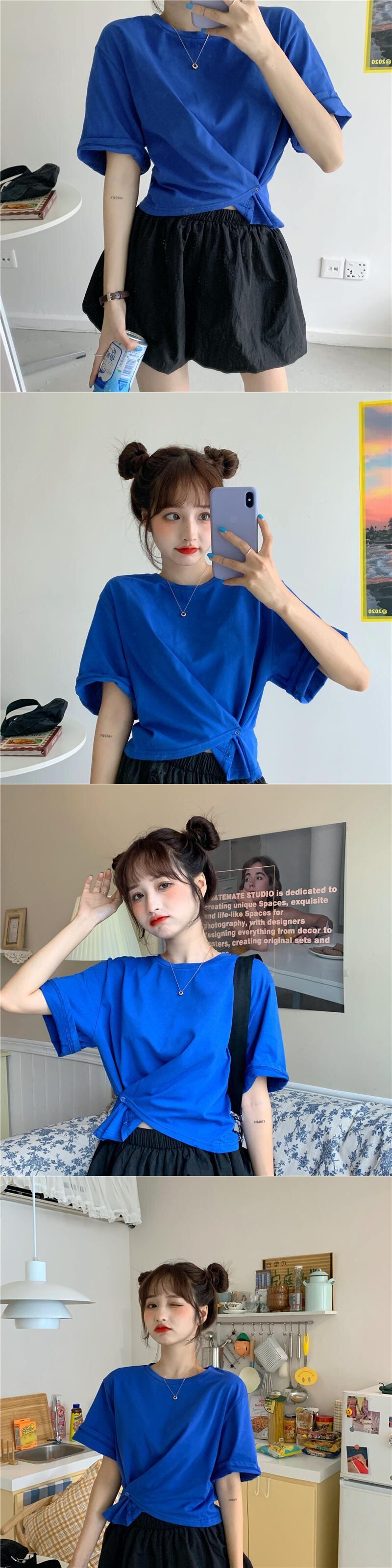 サマーソリッド カラーTシャツ シャツ スタイルトップス 夏物 ソリッドカラー 試着室9993198395