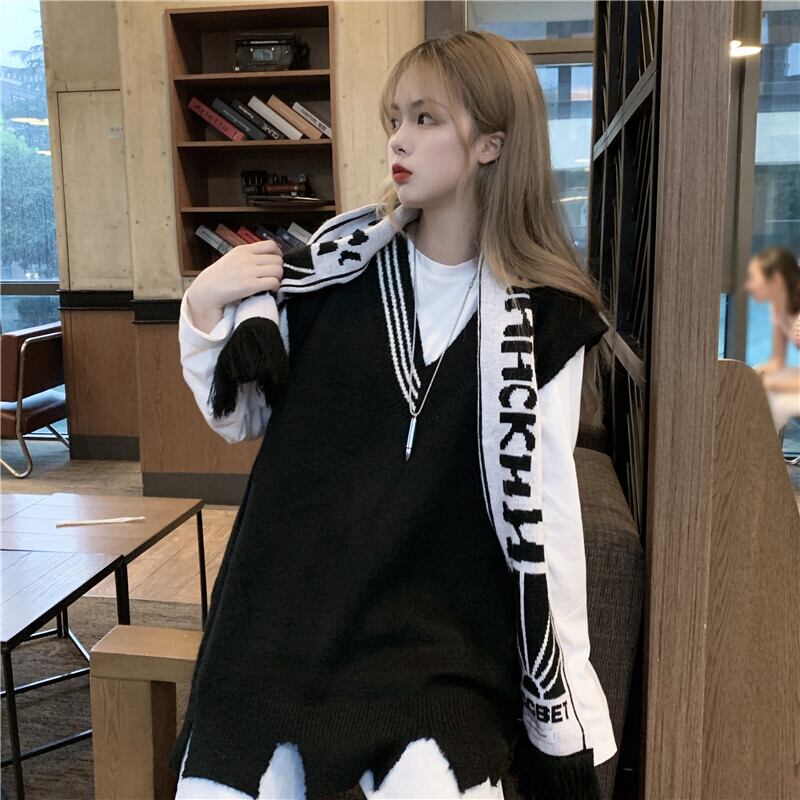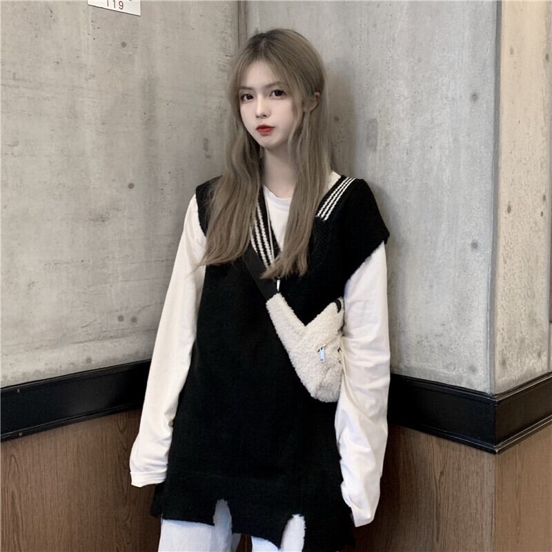 スプリングカラーニットスタイルVネックセーター 春物 試着室64163780759