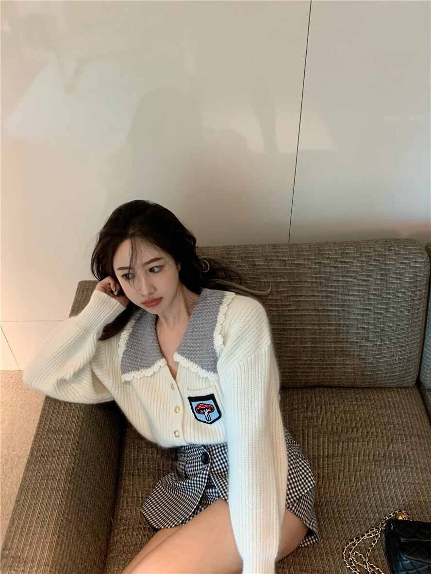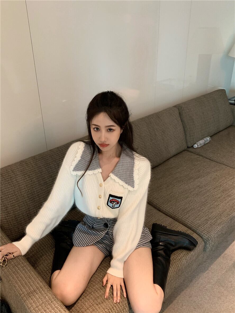 色:白いセーターワンピース,チェック柄ショートパンツシングルピース