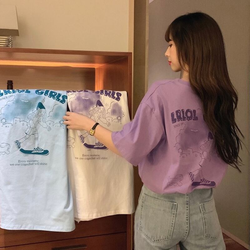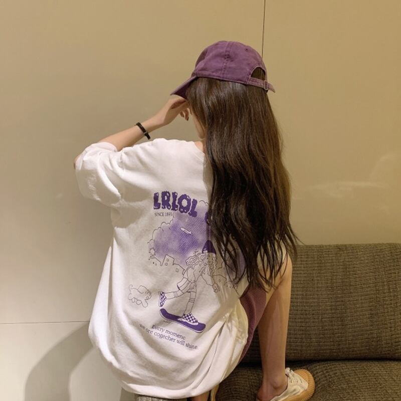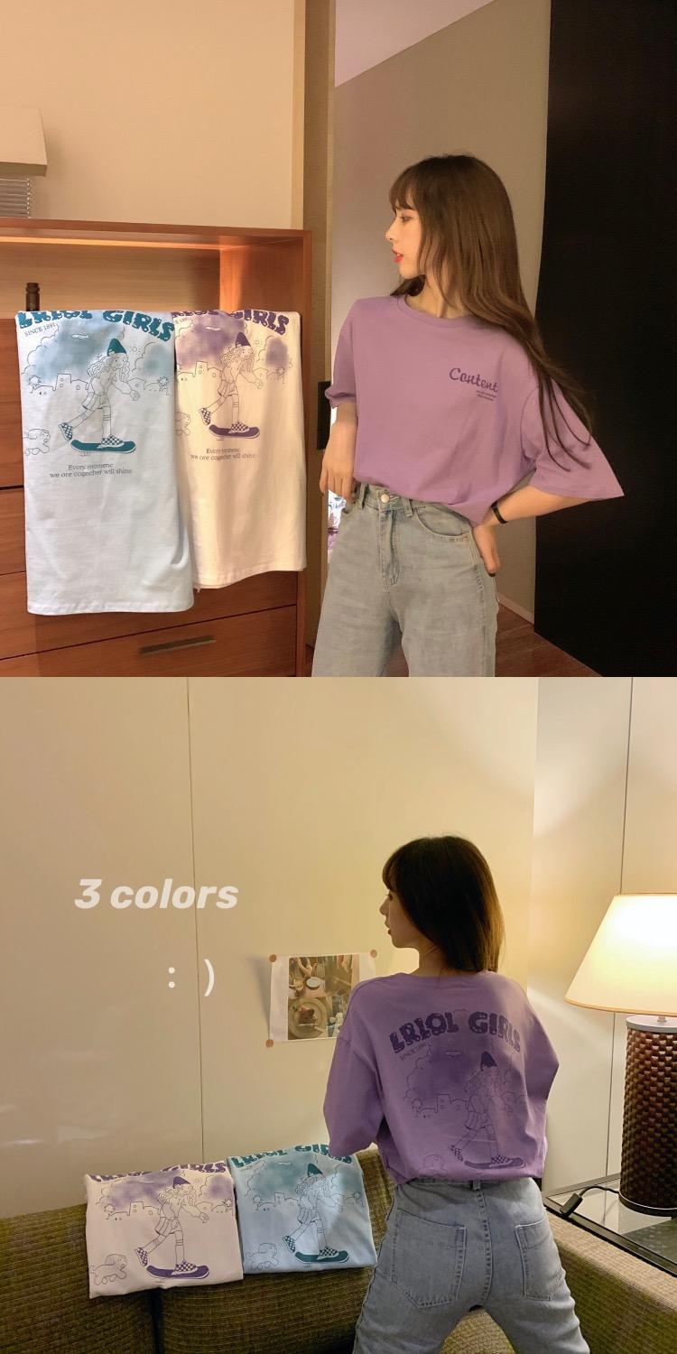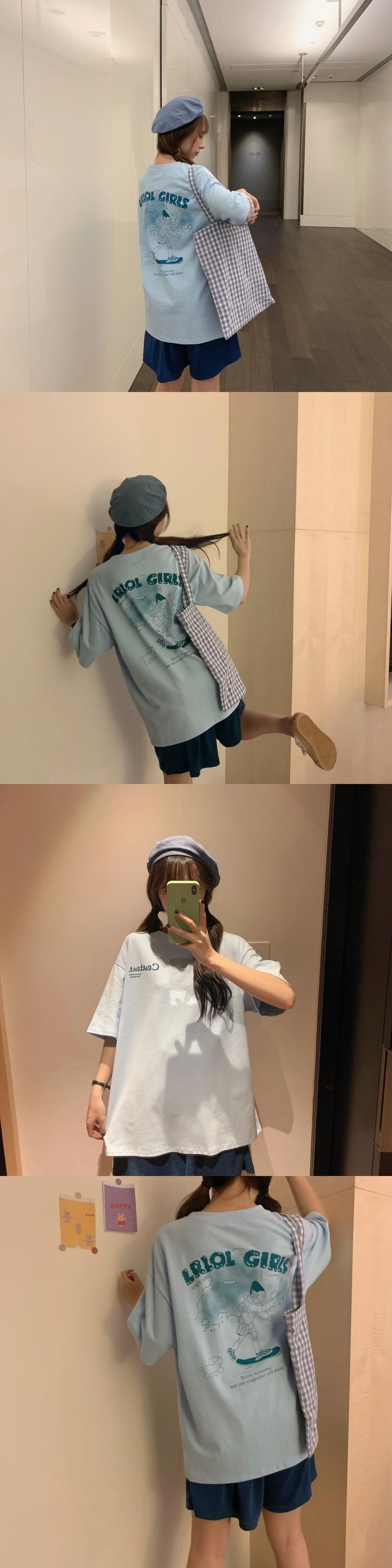 サマールーズスリムTシャツ バックプリントパターントップス 夏物 試着室47668408585