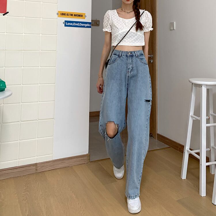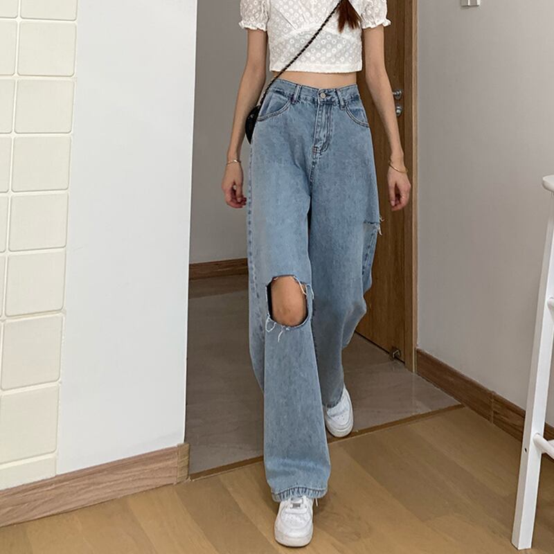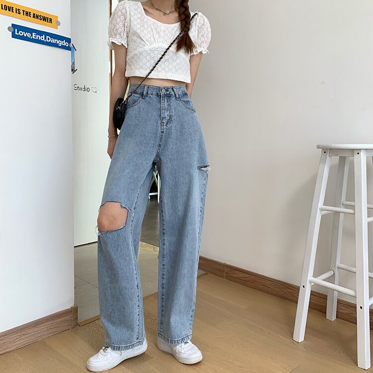 ルーズハイウェストパンツ スプリングオータムスタイルジーンズ レディース 春物 秋物 試着室57682623819