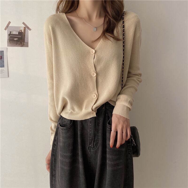 カーディガンスプリングVネックショートジャケット セーター レディース ロング 春物 試着室78066851351