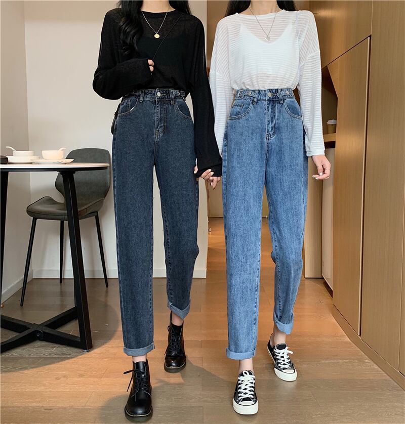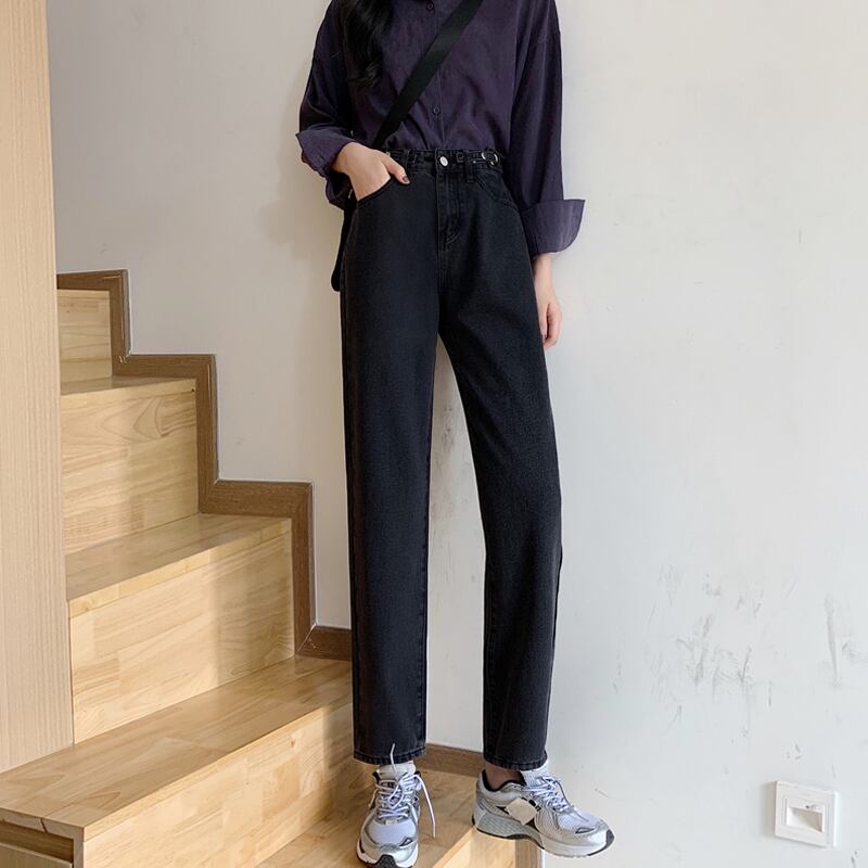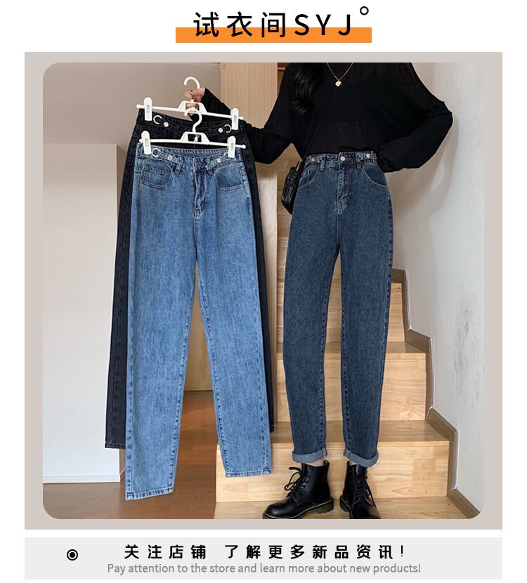パンツ スプリングオータムハイウェストウェストスリムルーズダークジーンズ 春物 秋物 試着室9072016725