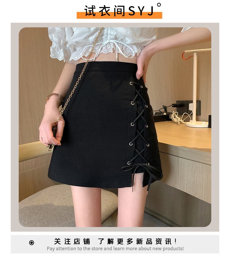 ブラックショートスカート スプリングオータムハイウェストウェストスリムAライン 春物 秋物 試着室73851679558