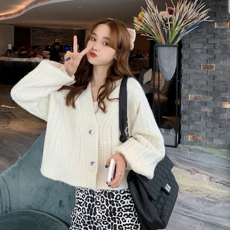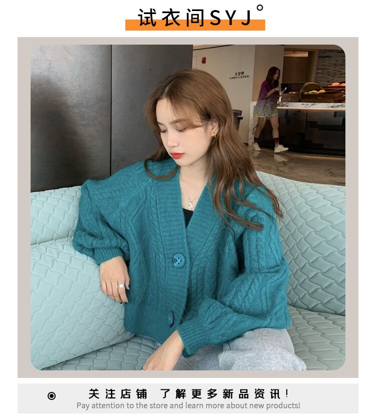 ルーズスタイルショートVネックカーディガンセーター ジャケット スプリングオータムトップス 春物 秋物 試着室14399915432