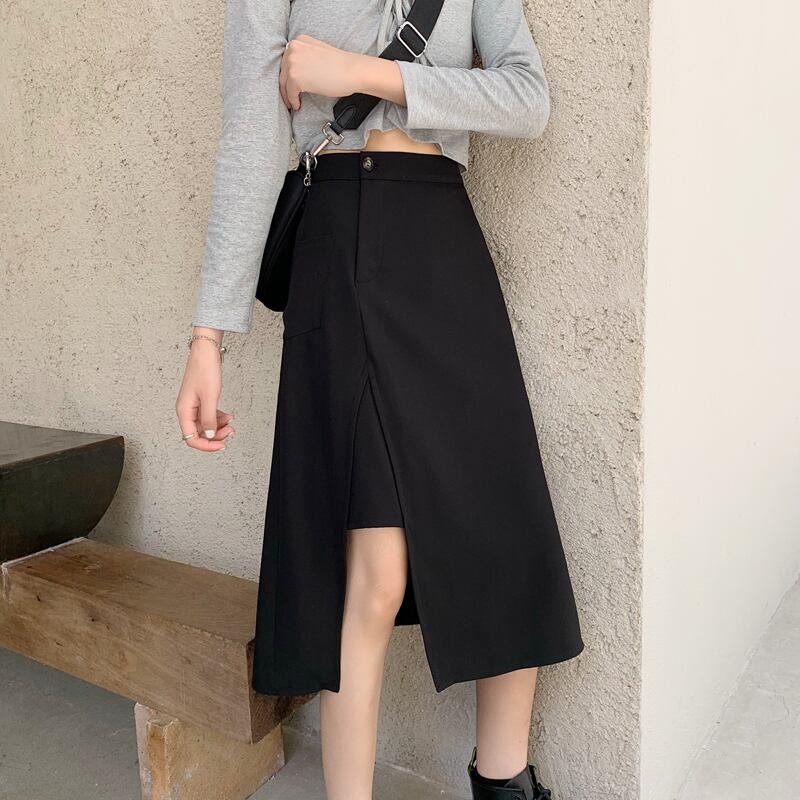スカート スプリングオータムハイウェストウェスト薄手Aライン 春物 秋物 試着室97452370752