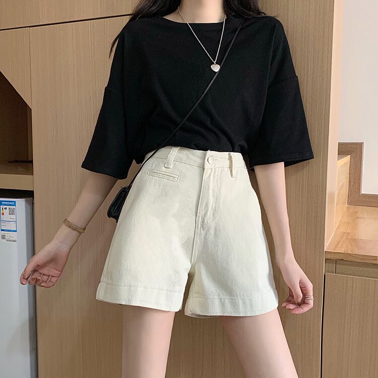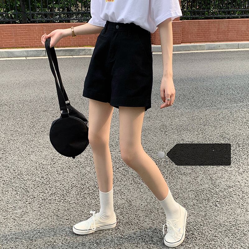 ブラックショーツ スプリングハイウェストウェストスリムジーンズ レディースルーズワイドレッグパンツ 春物 ブルマー ワイドパンツ 試着室411087841