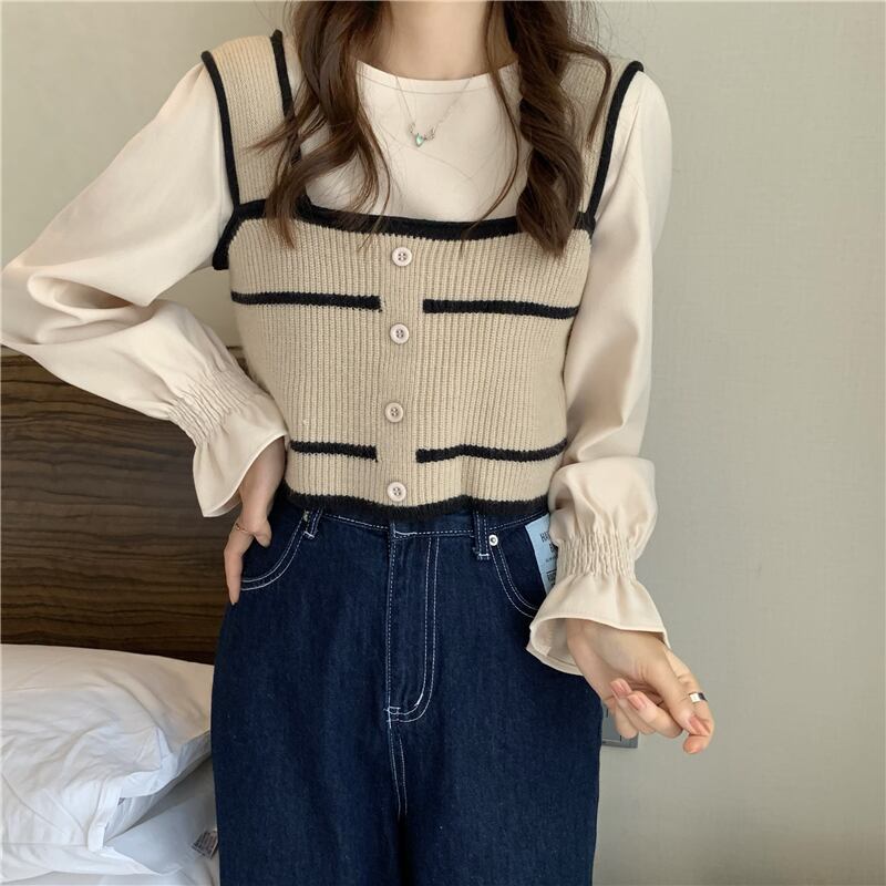 スタンダードスプリングスタイルノースリーブニット レトロ 春物 試着室96100502390