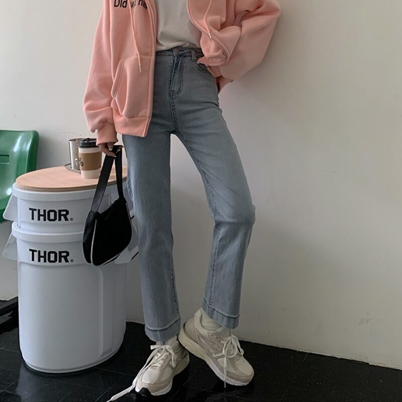 スプリングジーンズ ハイウェストウェストスリムパンツ 春物 試着室94643602813