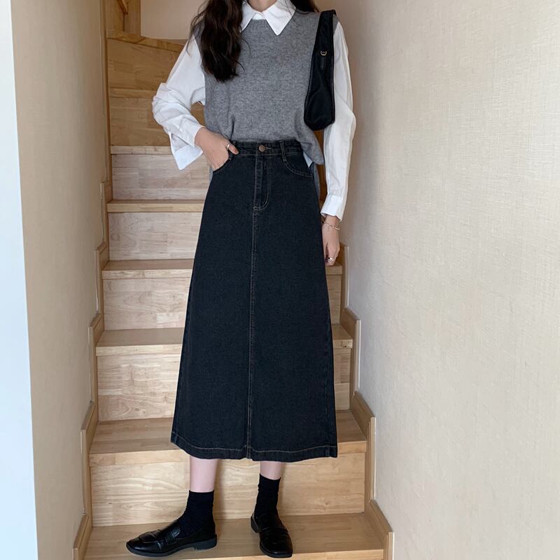 ブラックスカート スプリングスタンダードハイウェストウェストAライン レトロ 春物 試着室14756225707