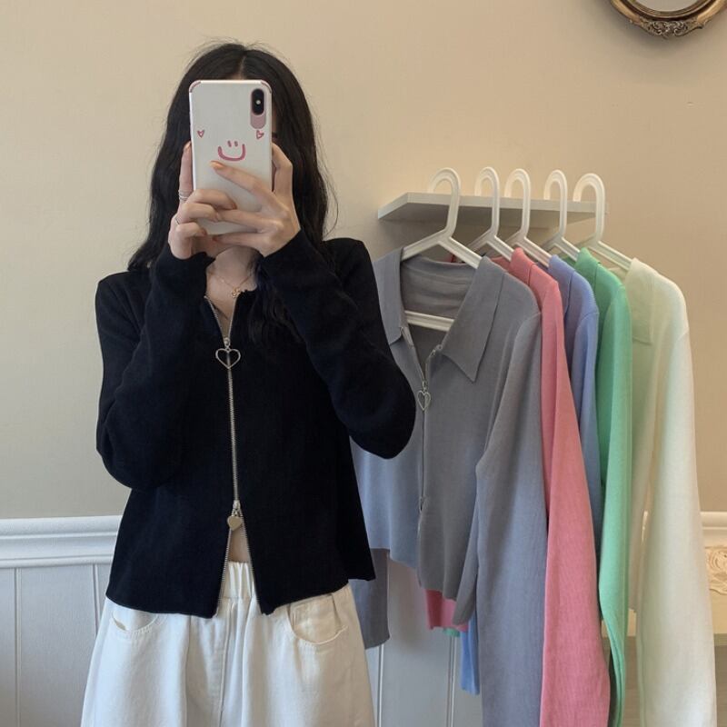 スプリングスリムショートニットセーター レディース薄手カーディガンブラウス ブラックトップス 春物 試着室27104604757