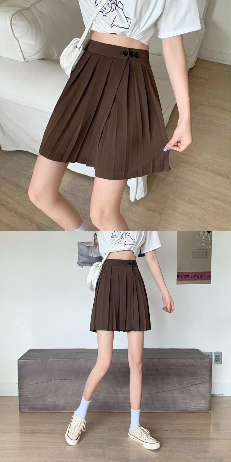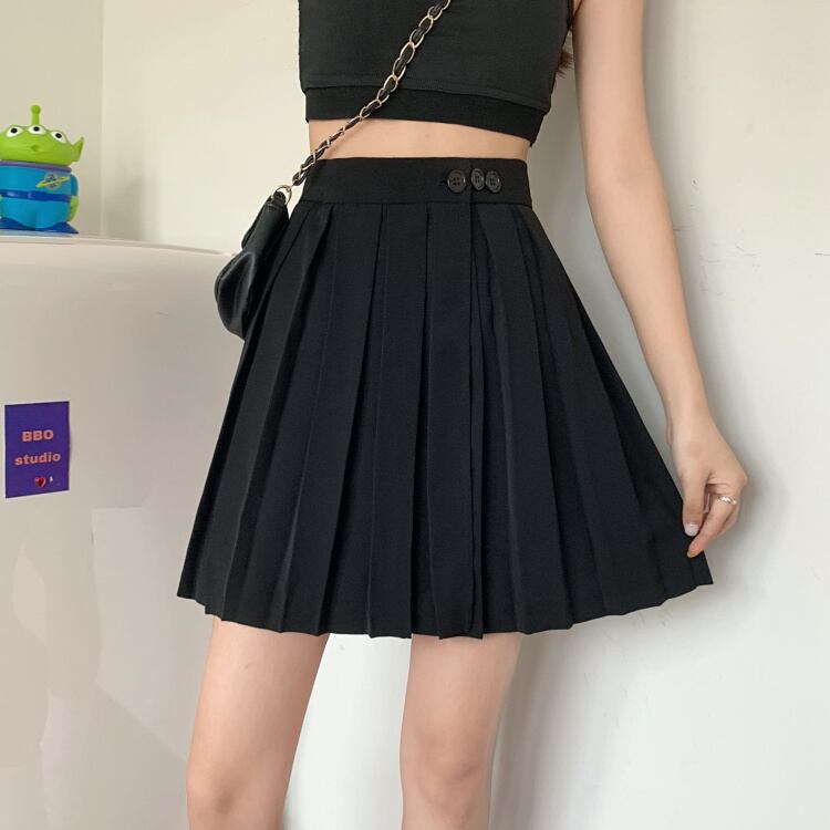 ブラックショートスカート スプリングハイウェストウェストスリムプリーツ 春物 試着室56680030211