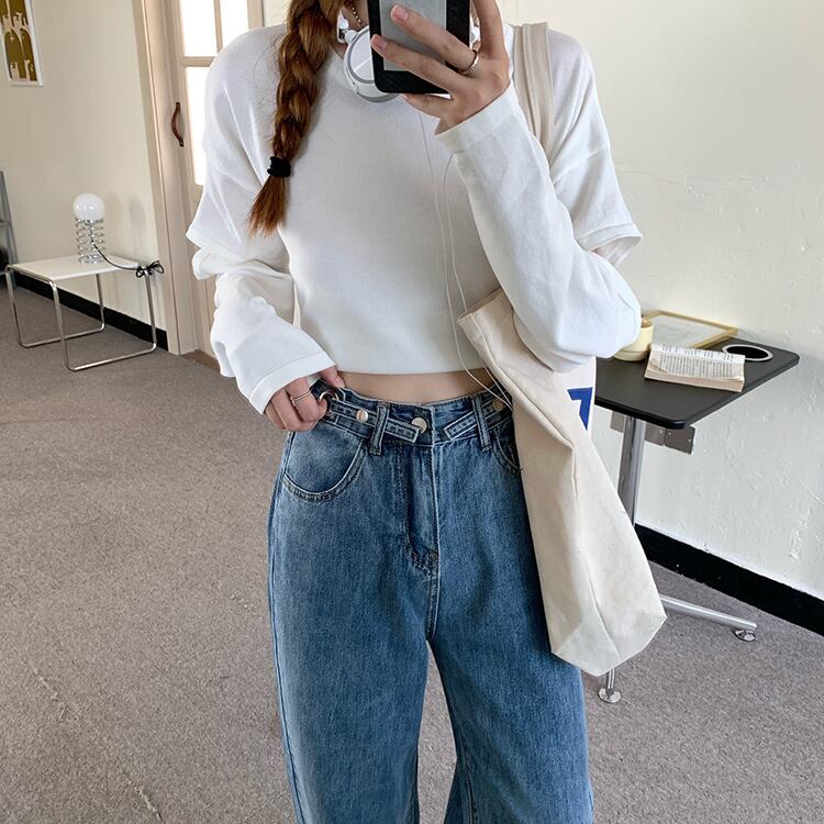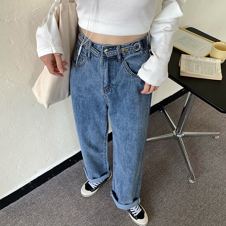 スプリングスタイルジーンズ ハイウェストパンツ ロング 春物 試着室17410821805