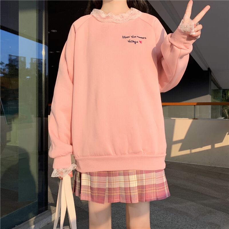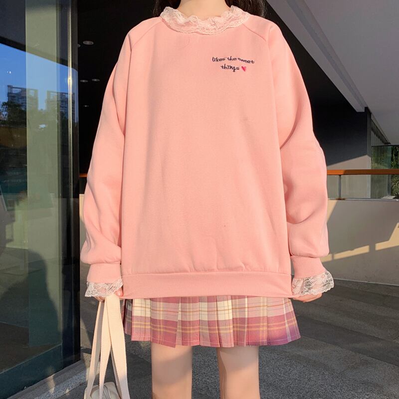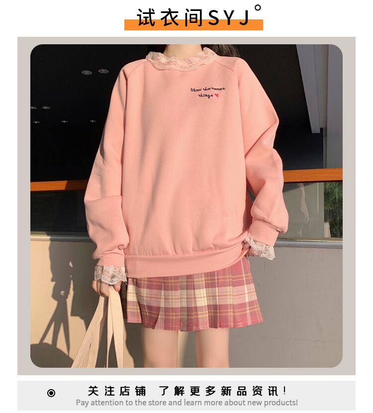 トップス スプリングオータムルーズラウンドネックセーター レディース ピンク 春物 秋物 Oネック 試着室28796046962