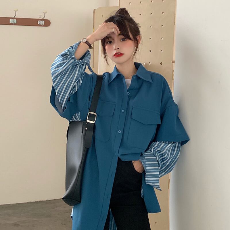 ストライプシャツ スプリングスタイルトップス 春物 試着室25841598023