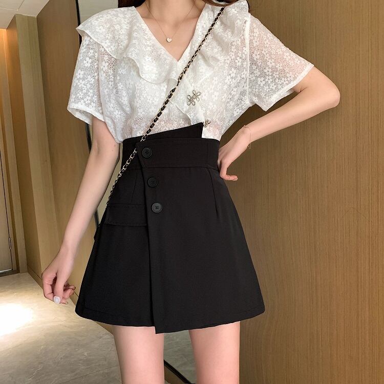 ブラックパンツ スプリング薄手カジュアルハイウェストウェストショーツ 春物 ブルマー 試着室69412489846