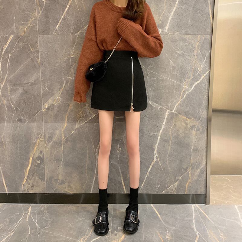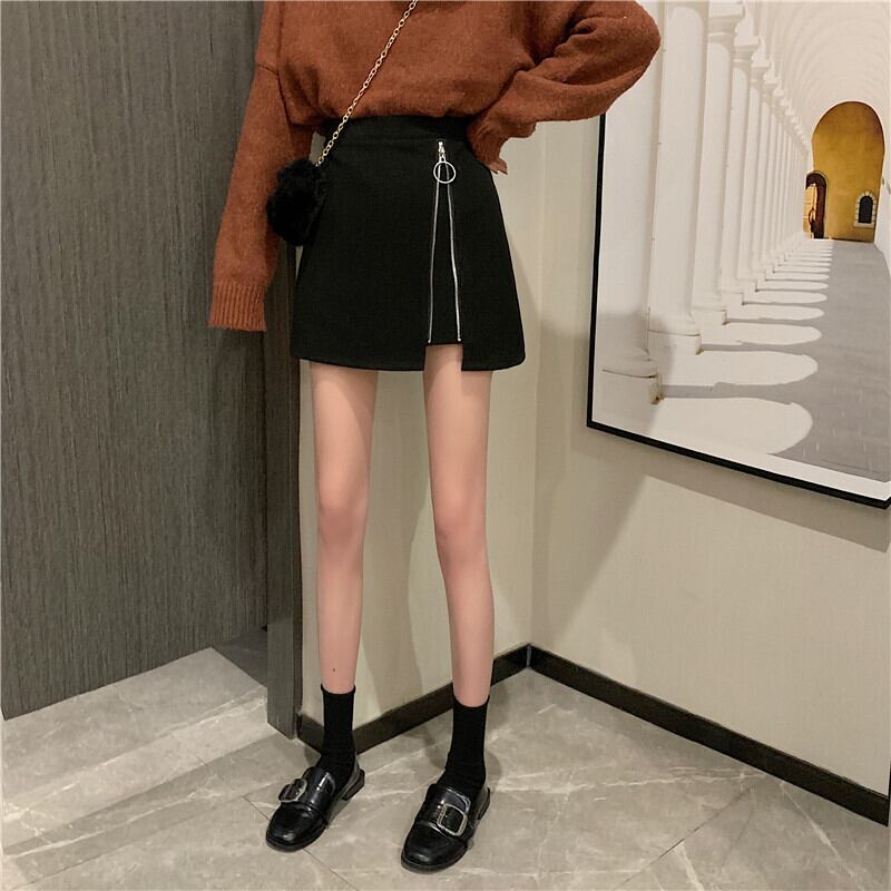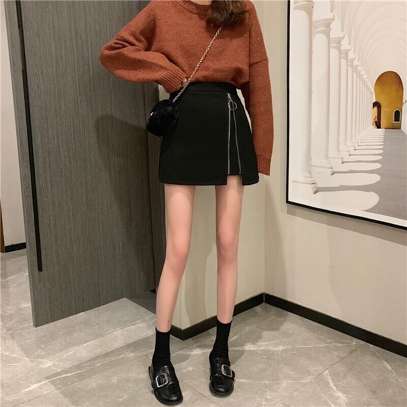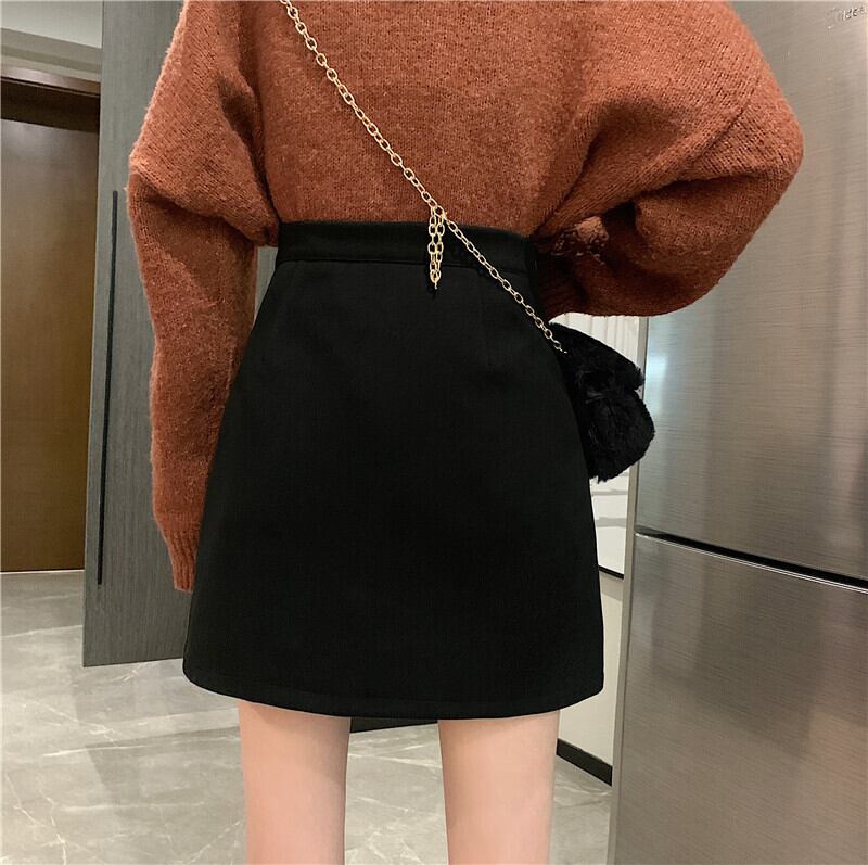ブラックスカート スプリングオータムハイウェストウェストスリムショート 春物 秋物 試着室88136132203