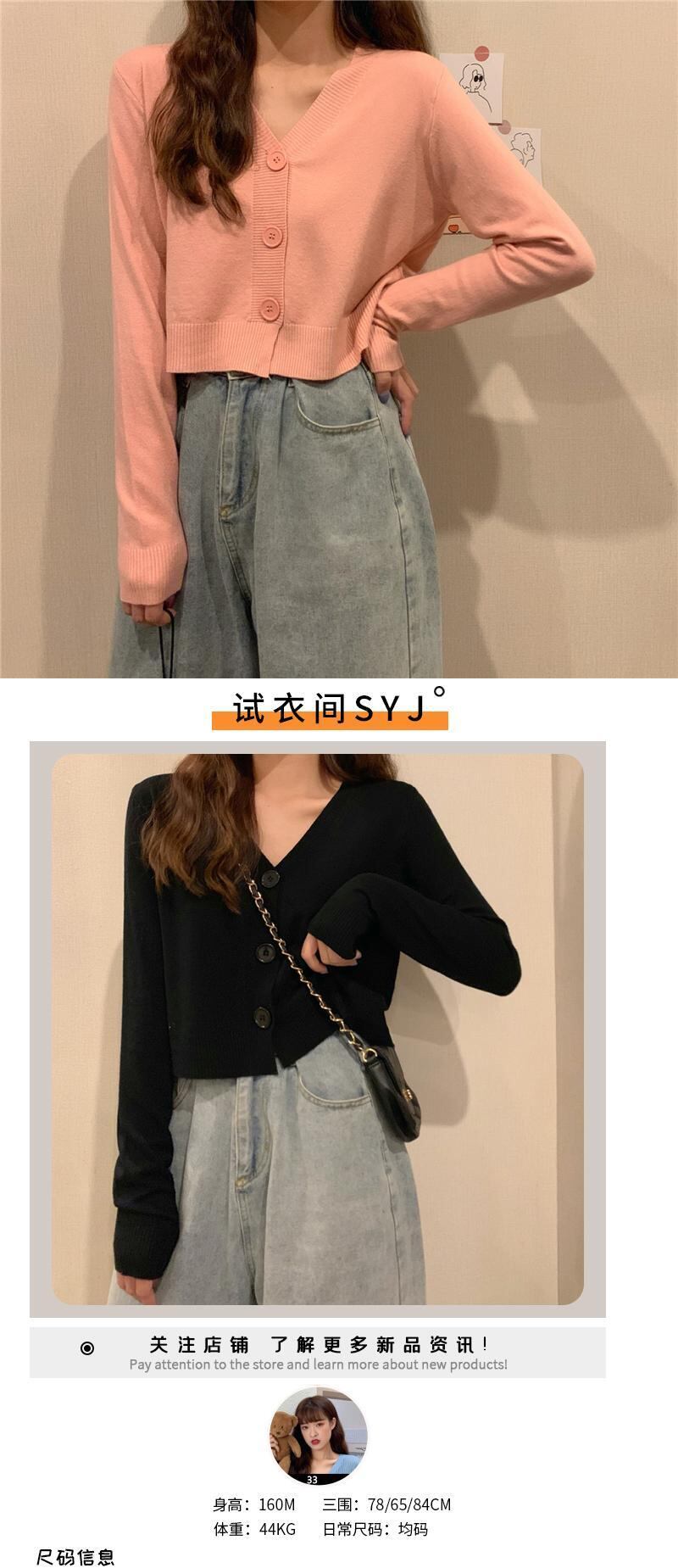 カーディガンショートニットセーター スプリングスタンダードVネックスタイル薄手シャツ トップス レトロ 春物 試着室51361904238