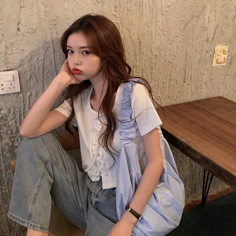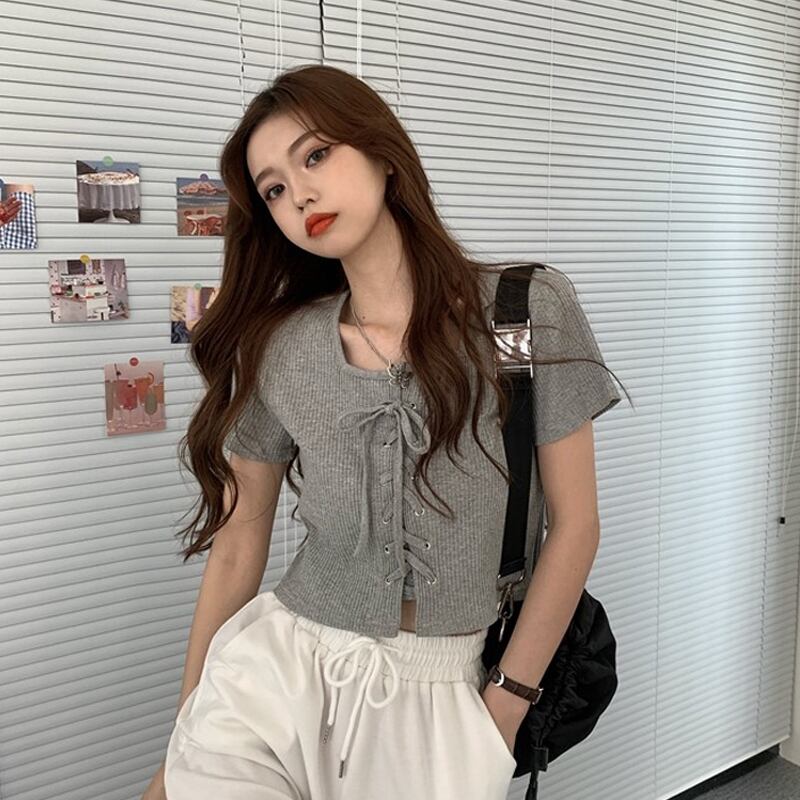 サマースリム薄手ショートクロップトップ トップス ホワイトTシャツ レディース 夏物 試着室91622586144