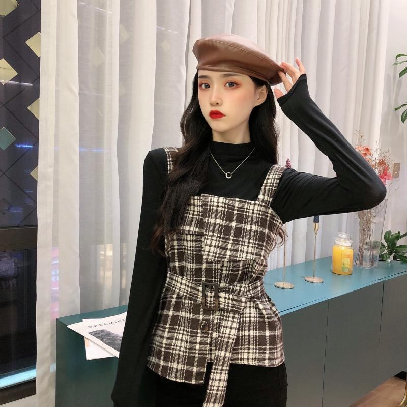 サマー格子柄ノースリーブトップス 夏物 試着室70931431178