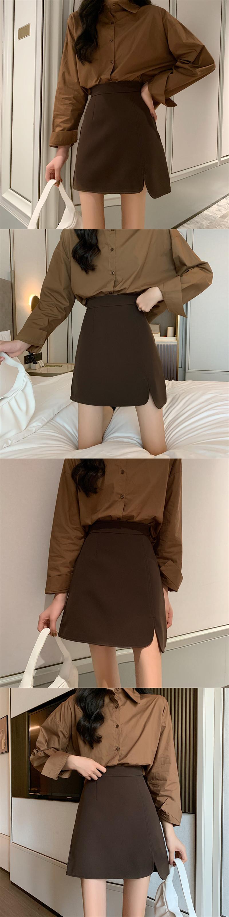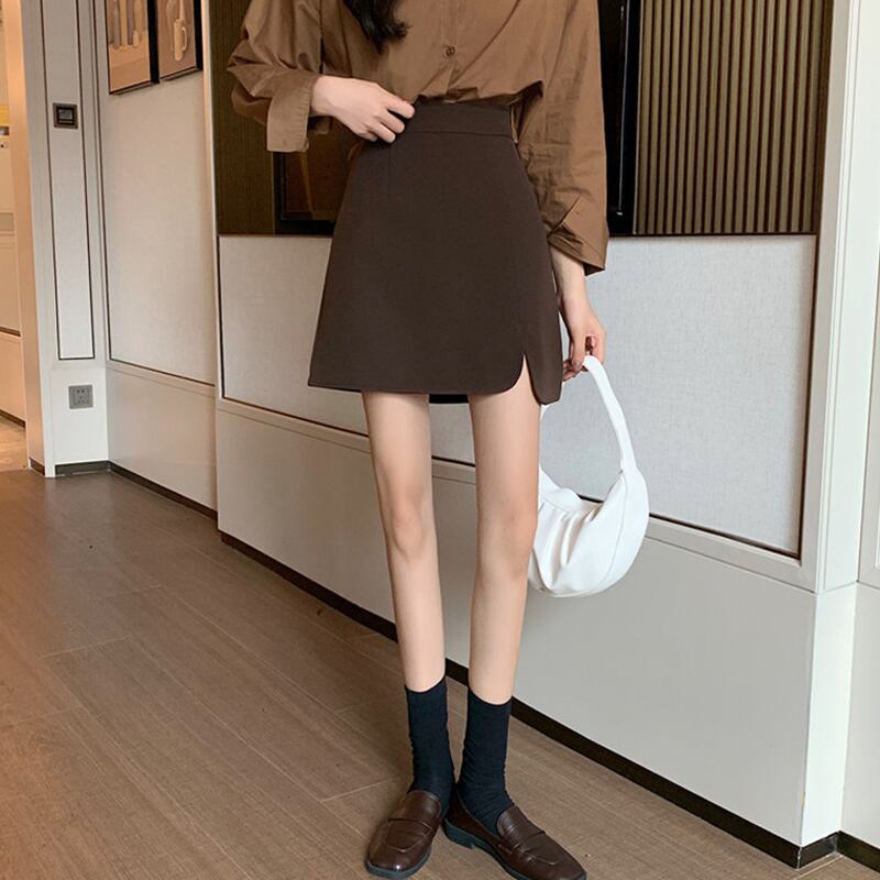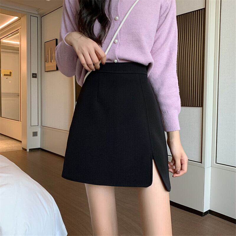 スプリングハイウェストウェストスリムスカート ブラックショートAライン 春物 試着室48352147920