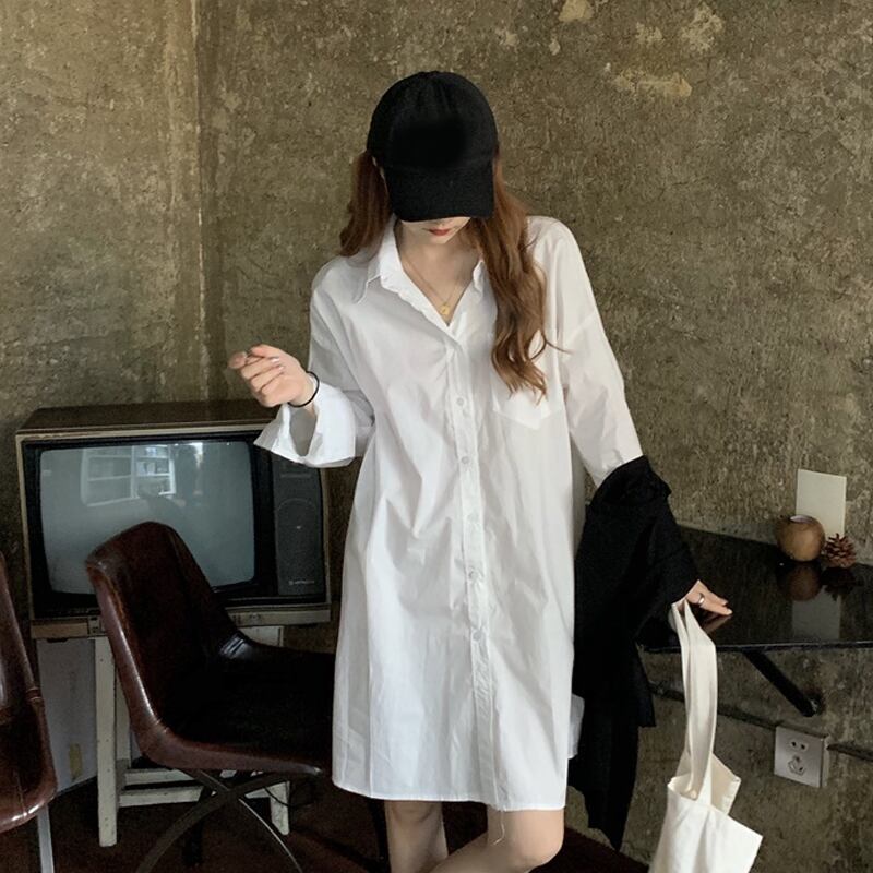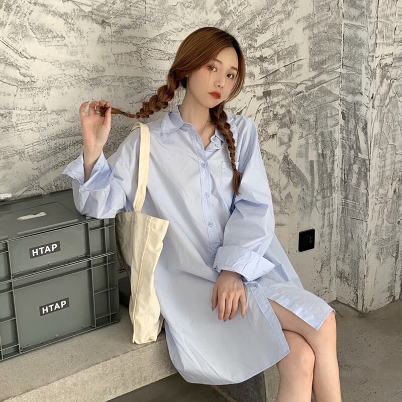 スプリングルーズ薄手ソリッド カラーシャツ トップス レディース 春物 ソリッドカラー 試着室94774384042