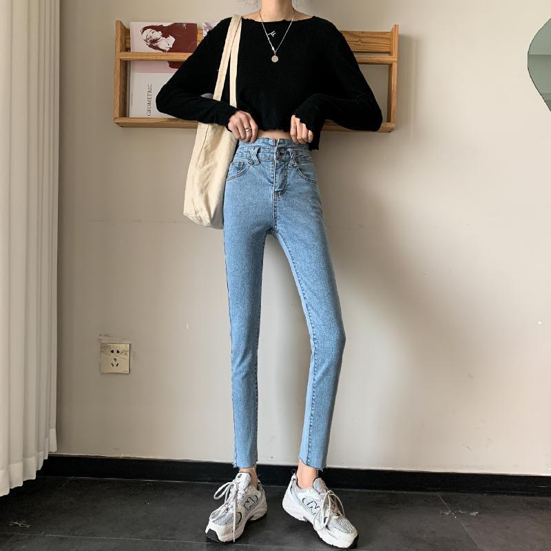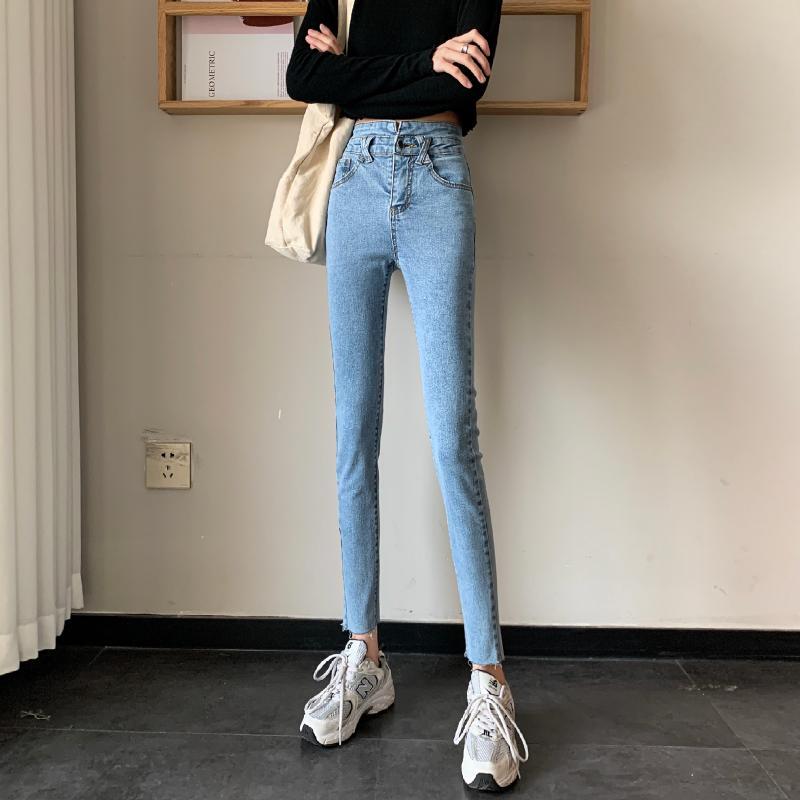 パンツ スプリングオータムウェストスリムジーンズ レディース 春物 秋物 試着室30392392120