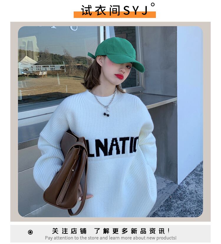 スタイルホワイトセーター レディーススプリングオータムルーズニットラウンドネックプルオーバー トップス 春物 秋物 Oネック 試着室38653251543