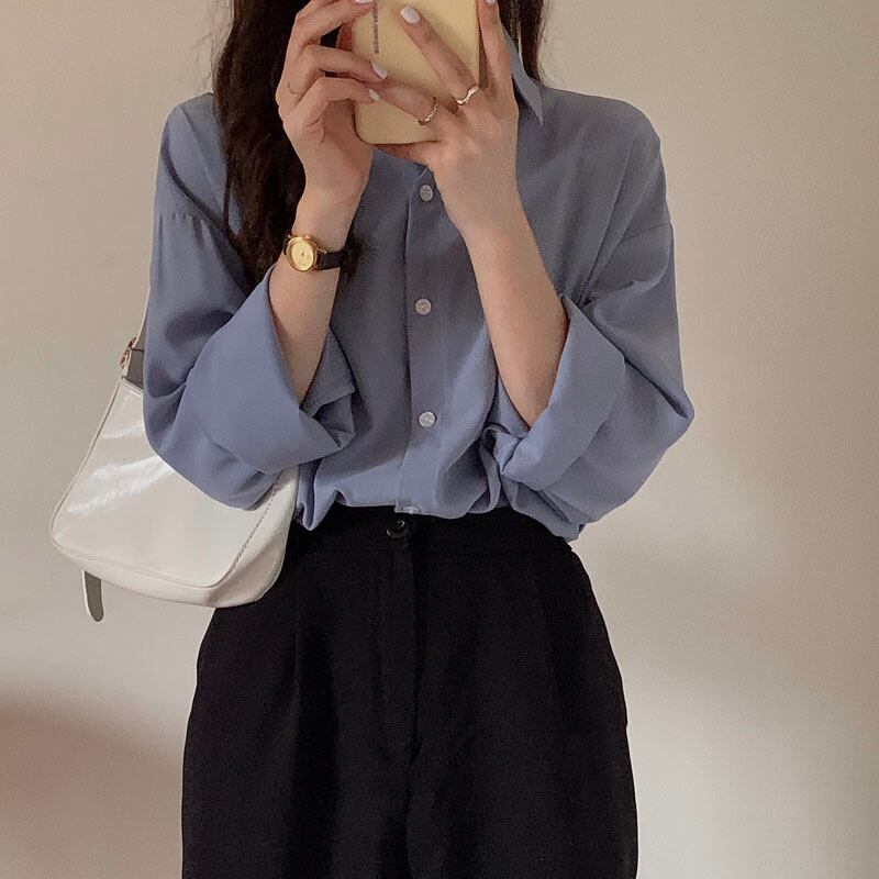 シャツ トップス スプリングルーズカラー ロング 春物 試着室48755370564