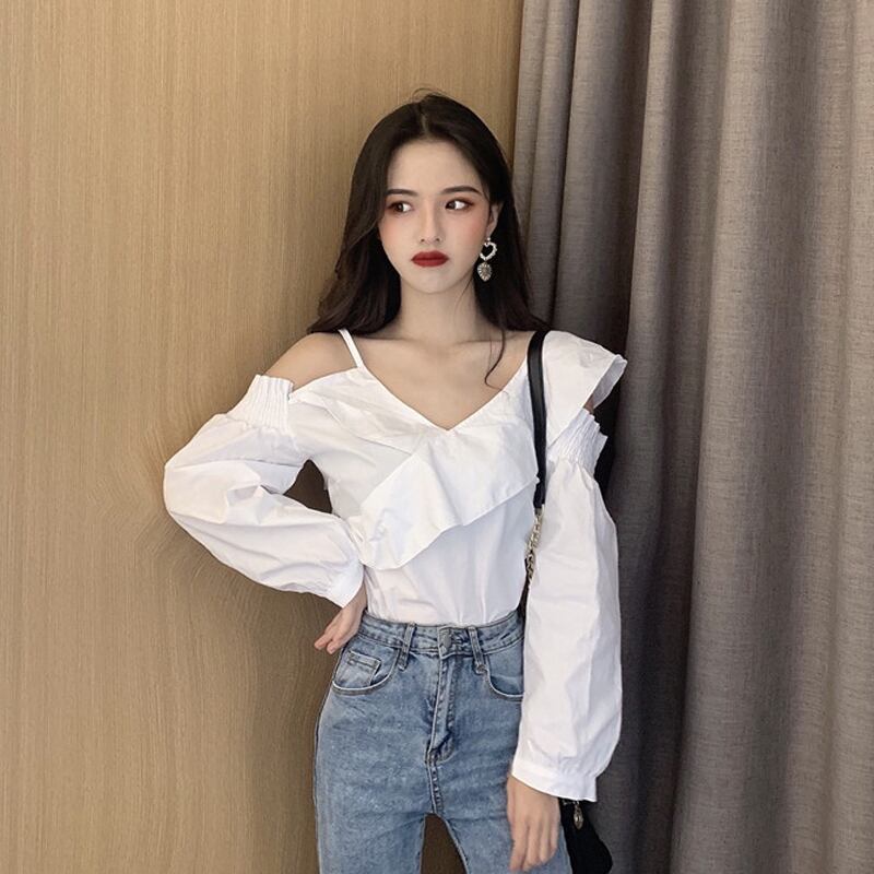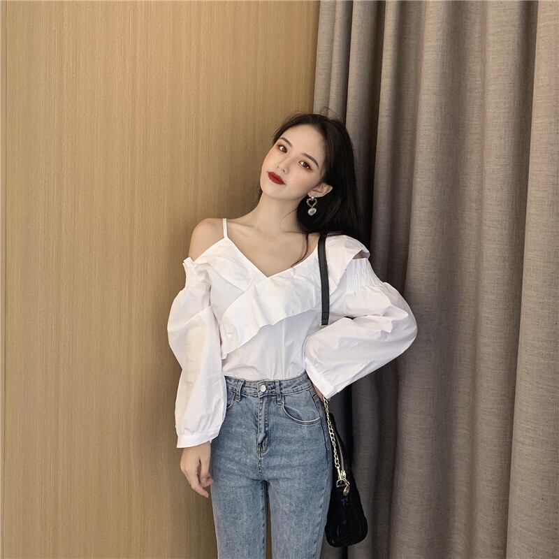 ホワイトシャツ スプリングスタイルルーズ薄手トップス ロング 春物 試着室17857249421