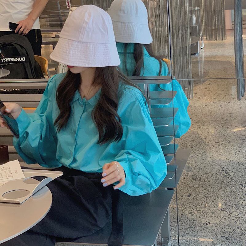 ブルーシャツ スプリングルーズトップス ロング 春物 試着室92213851419