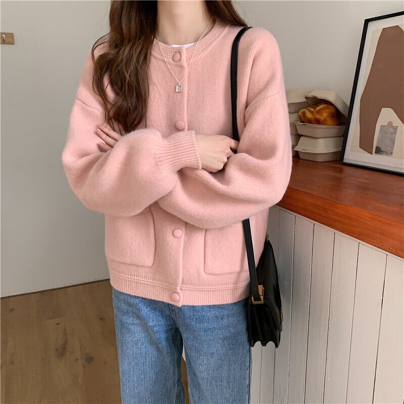 セーター ジャケット スプリングオータム薄手スタンダードニットカーディガン ピンク レトロ 春物 秋物 試着室18546503591