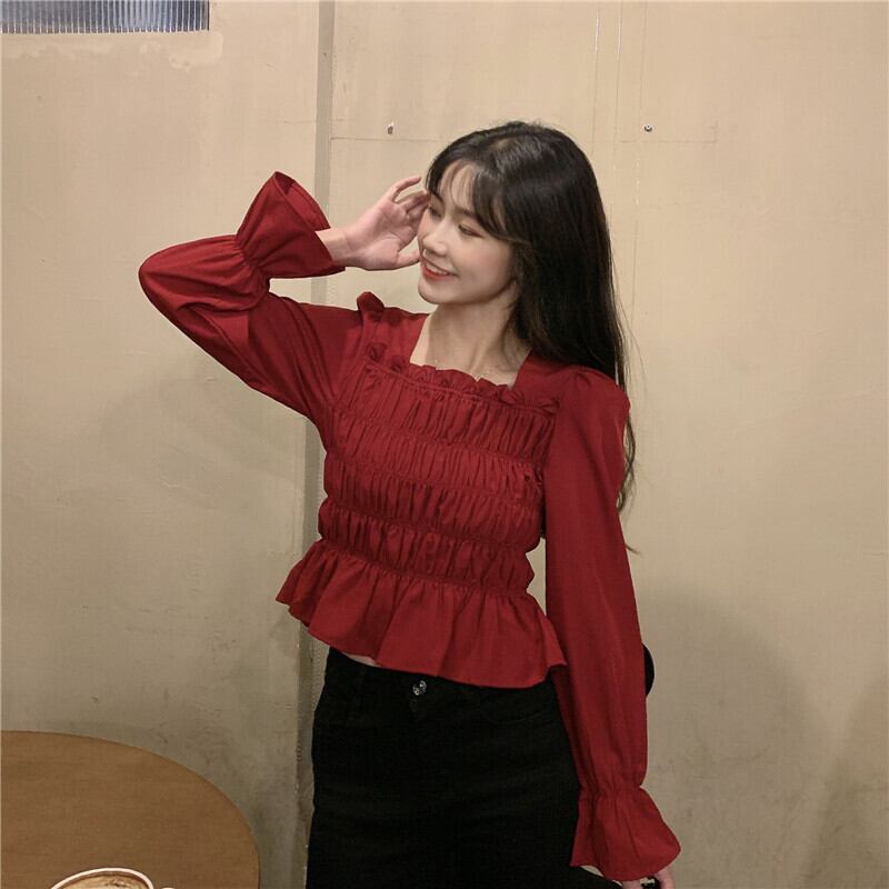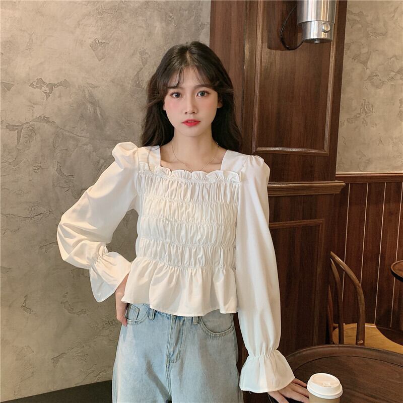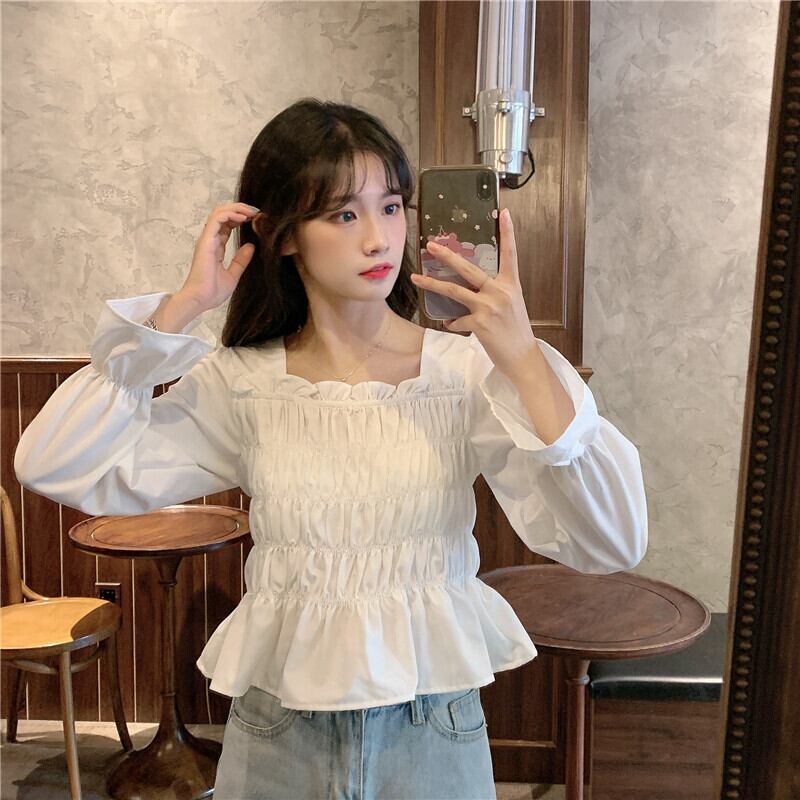 ホワイトシャツ スプリングスタイルカラー長袖スリーブトップス ロング 春物 スクウェア 試着室16799358695