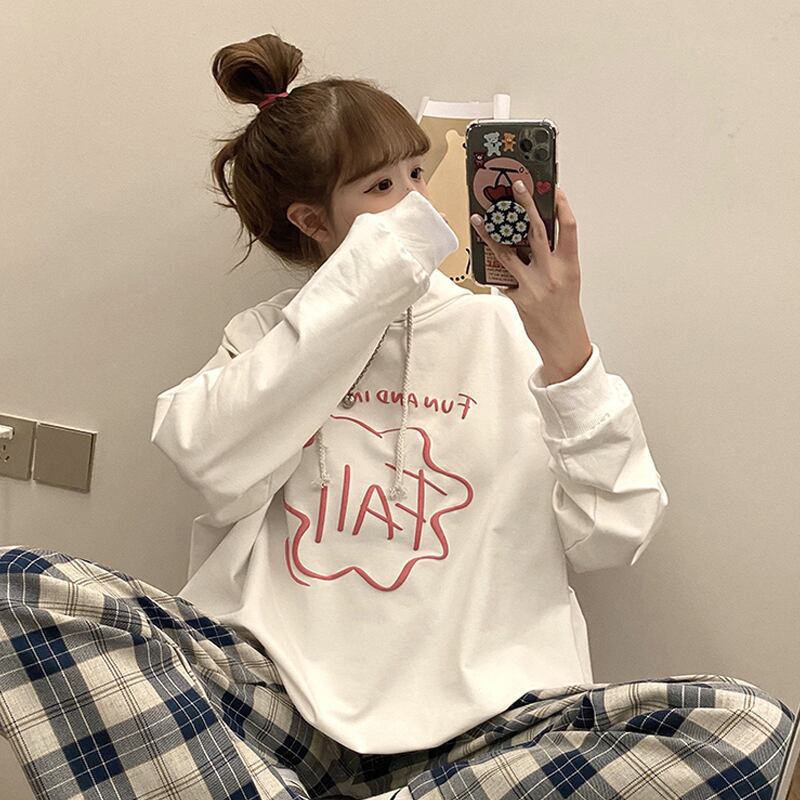 スプリングオータムルーズフードプリントセーター レディースカジュアルトップス 春物 秋物 試着室74458285958