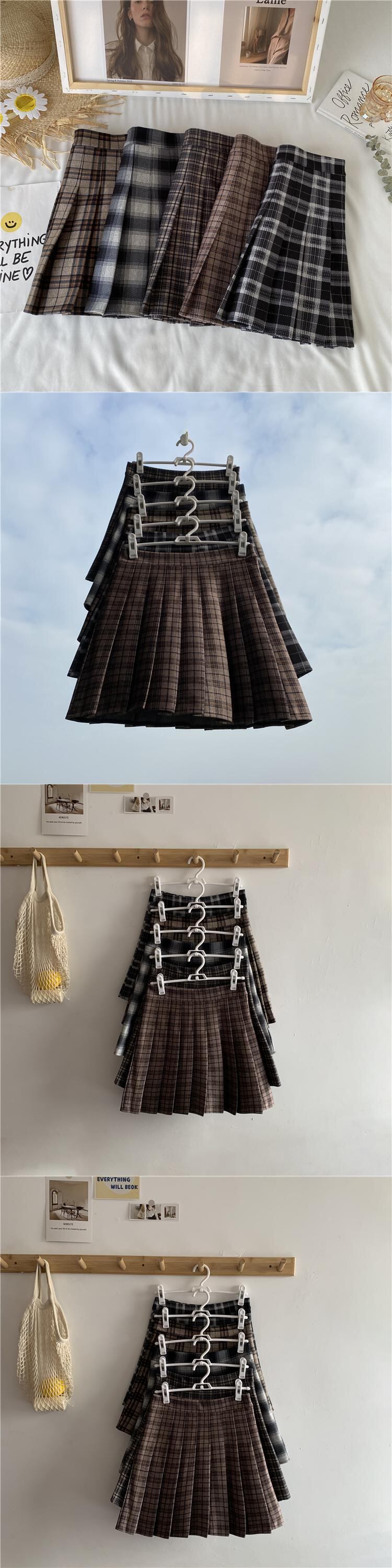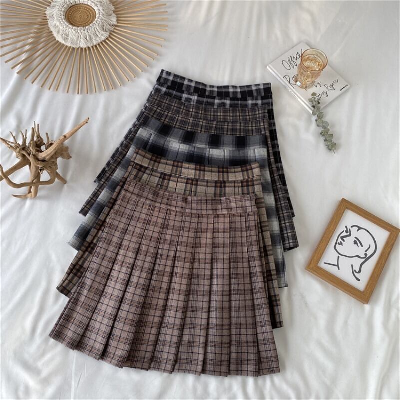 サマー格子柄ハイウェストウェスト薄手スカート プリーツ 夏物 試着室58249587070
