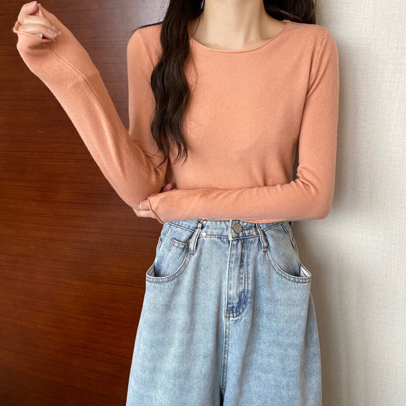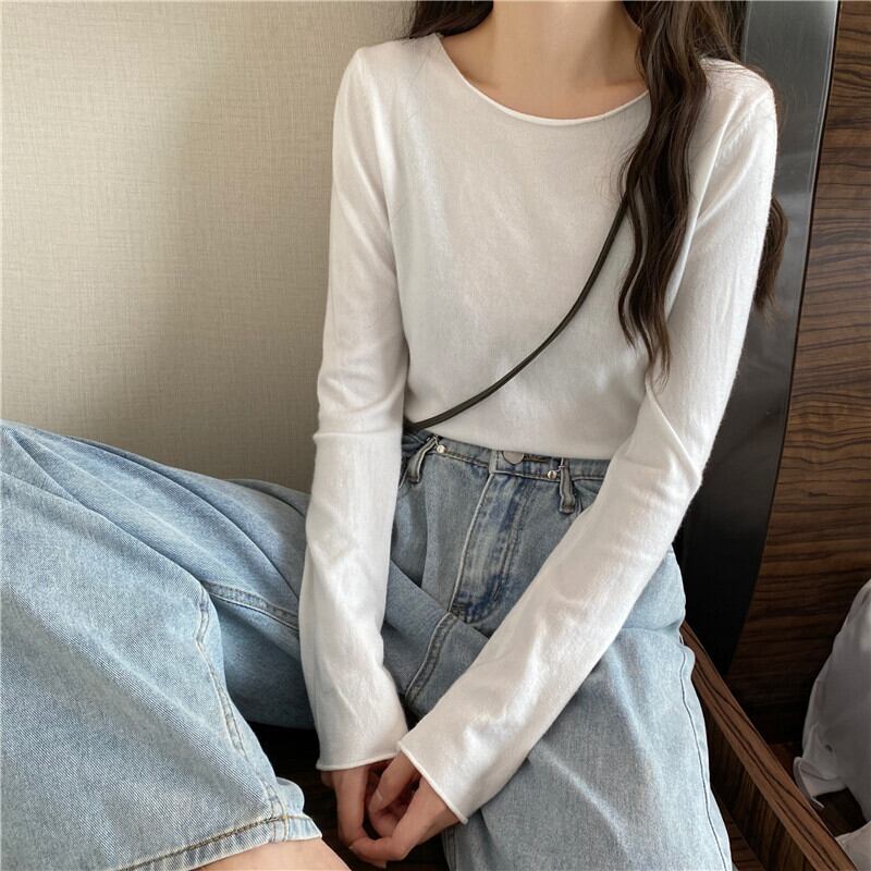 ラウンドネックシャツ スプリングホワイトTシャツ 薄手スタイルジャケット ロング 春物 Oネック 試着室10741519498